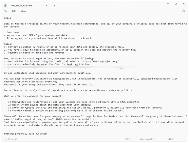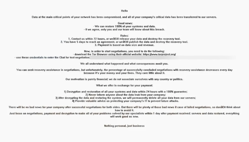 Data at the main critical points of your network has been compromised, and all of your company's critical data has been transferred to our servers.