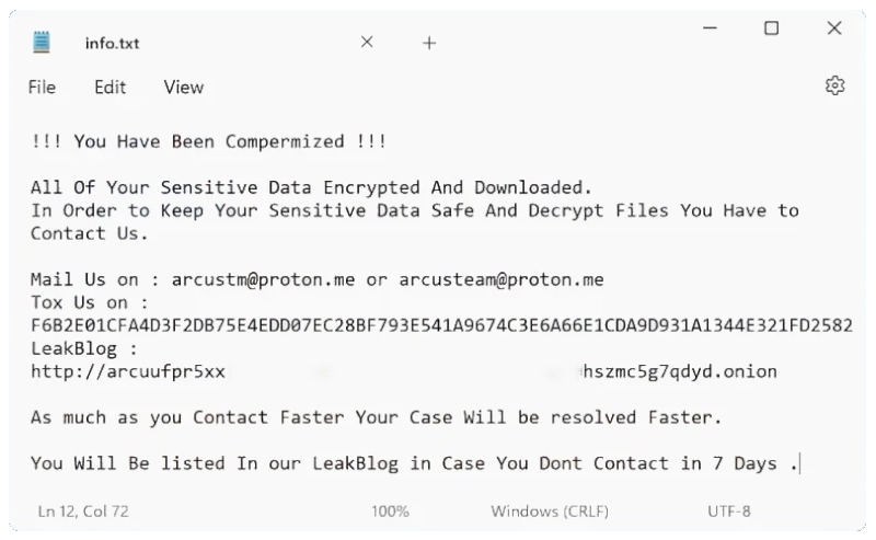 Unfortunately We Have to Let you Know Your Company Targeted By Arcus