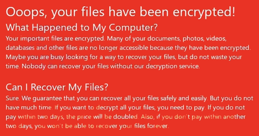 Your important files are encrypted. Many of your documents, photos, videos, databases and other files are no longer accessible because they have been encrypted. Maybe you are busy looking for a way to recover your files, but do not waste your time. Nobody can recover your files without our decryption service.