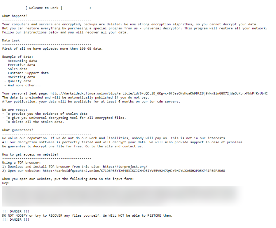 DarkSide Ransomware files: