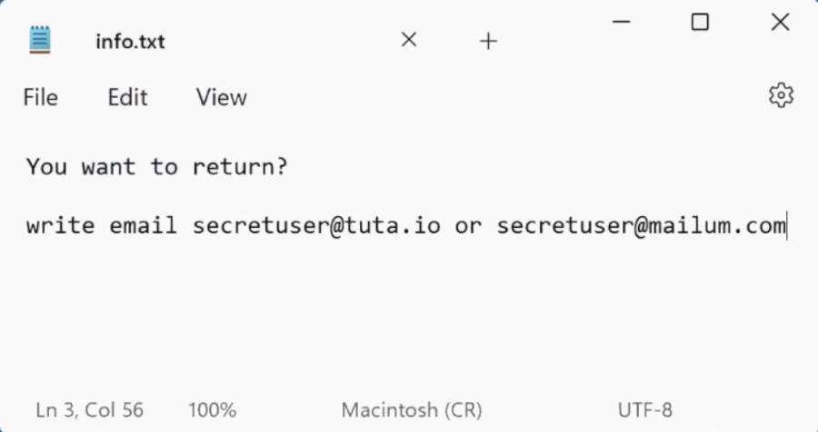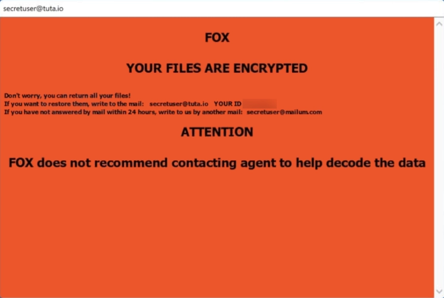 write email secretuser@tuta.io or secretuser@mailum.comNo public decryption tools are currently available for files encrypted by FOX (Dharma) Ransomware, making recovery exceptionally challenging for those infected. This ransomware uses a sophisticated mix of symmetric and asymmetric encryption, often RSA and AES, both of which are difficult to crack without the correct keys. For victims wondering how to decrypt .SCRT files, the unfortunate reality is that without paying the ransom or having access to advanced security tools, recovering affected files is nearly impossible. The security community advises against paying the ransom, as there are no guarantees that victims will receive the decryption keys after payment, and it only encourages further criminal activity. Instead, the best approach remains preventive: regularly backing up important files, maintaining updated security software, and remaining vigilant against phishing attacks and suspicious downloads. Reporting the incident to the appropriate authorities might not provide immediate relief, but it contributes to a broader fight against ransomware attacks and can assist in tracking and prosecuting the perpetrators.