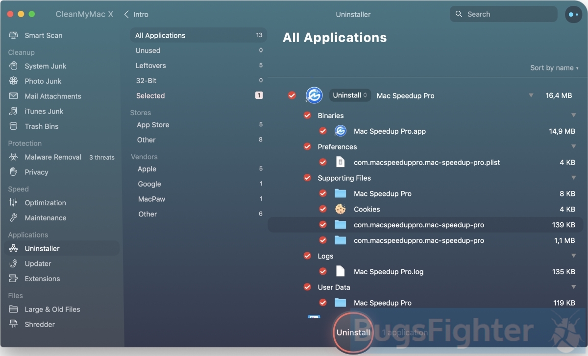 - Choose files and folders you want to remove along with Mac Speedup Pro.