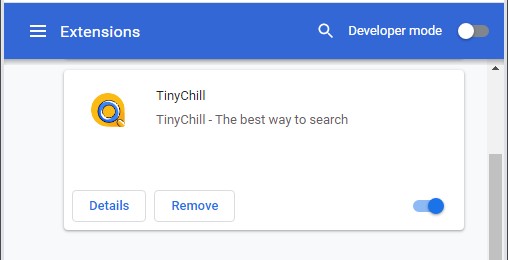 Note: TinyChill can be installed as Google Chrome extension as Administrator (you may see Installed by enterprise policy inscription near it), and this will not allow removal. Therefore, before starting removal process, perform these actions: