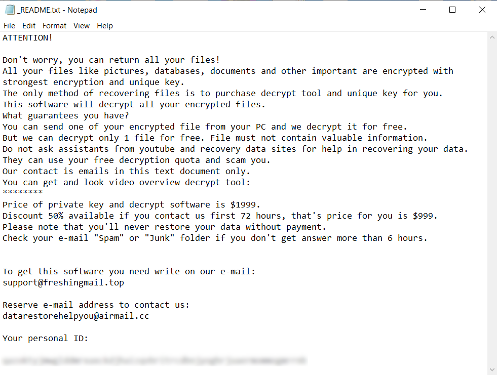 Uazq Ransomware is a malicious software that falls under the category of crypto-ransomware. It is a part of the STOP/Djvu Ransomware family, which has been active since 2018 and is known for targeting individual users. The primary function of Uazq Ransomware is to encrypt files on the infected computer, rendering them inaccessible to the user, and then demanding a ransom for the decryption key. The Uazq Ransomware employs the Salsa20 encryption algorithm, which is known for its strong encryption capabilities. The algorithm generates a vast number of possible decryption keys, making brute-force attempts to crack the encryption impractical. For each file it encrypts, the ransomware appends a .uazq file extension, signaling that the file has been compromised. After encrypting the files, Uazq Ransomware creates a ransom note named _README.txt in the folders containing the encrypted files. This note contains instructions for the victim on how to pay the ransom and contact the attackers to obtain the decryption key. The ransom amount typically ranges from $499 to $999, payable in Bitcoin.