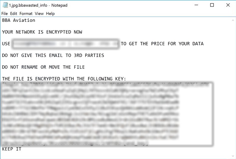 [randomly-generated-key] KEEP ITInside of a ransom note, users are instructed against deleting encryption keys, moving or renaming the file, and interacting with third-parties tools. The only way to decrypt your files, as cybercriminals claim, is to buy their decryption software in BTC. Otherwise, your data will remain restricted even after deleting the virus. Unfortunately, this is precisely so unless ransomware contains some frailties or unsupervised bugs. Despite this, we do not recommend you to meet demands of swindlers, because oftentimes there is a scenario when users get fooled and do not receive any decryption software even after completing the payment. The best thing you can do safe and definite is to get rid of WastedLocker and try to recover data from external backups, if possible. Follow our guide below to find out how.