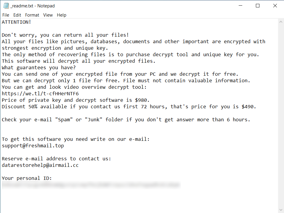 Yzqe Ransomware is a file-encrypting virus infection that restricts access to data such as documents, images, and videos by encrypting files with the .yzqe extension. It is a variant of the notorious STOP/DJVU ransomware family. Once the files are encrypted, they are rendered inaccessible, and the ransomware drops a ransom note named _readme.txt on the desktop. The note contains instructions to visit a payment website and submit payment in Bitcoin cryptocurrency in exchange for the decryption key, which can allegedly restore access to encrypted files. The Yzqe Ransomware uses the Salsa20 encryption algorithm, which is almost impossible to “hack” due to the large key length and the vast amount of possible keys. The ransomware makes a copy of your file, removes the original one, encrypts the copy, and leaves it instead of the removed original.
