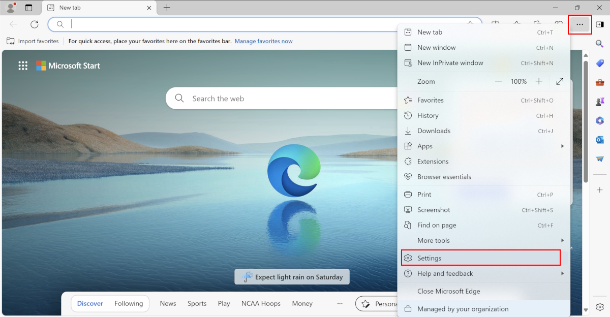 - Launch Edge and click the three dots in the top-right to open the menu.