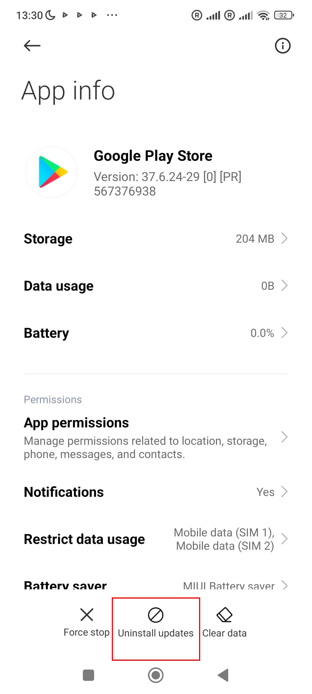 If the error persists after trying the above methods, consider uninstalling updates for the Google Play Store: