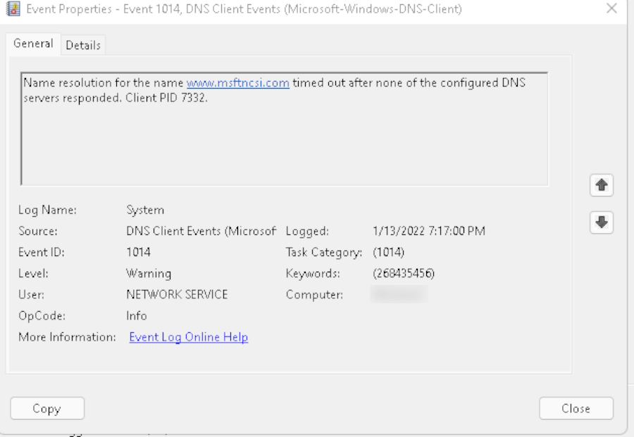 Several factors can contribute to the occurrence of the Event ID 1014 error on Windows 11, including: