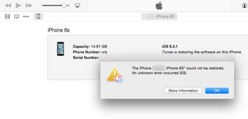 Error 53 is an old yet very popular issue faced by iOS owners. The problem occurs when trying to update or restore a device through iTunes. These are the messages commonly received by error 53 victims: