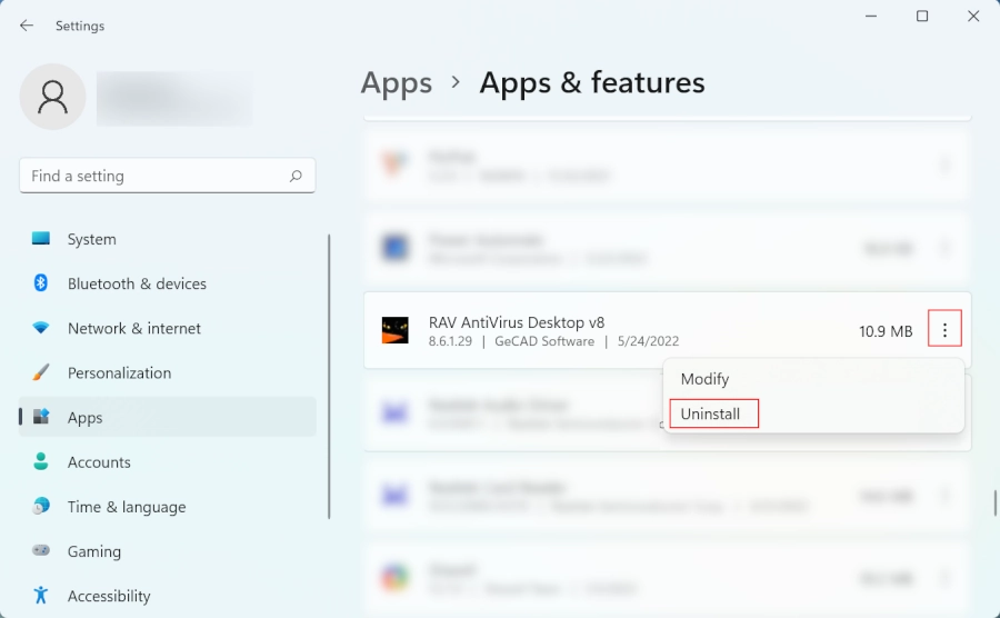 2. Uninstall RAV Antivirus