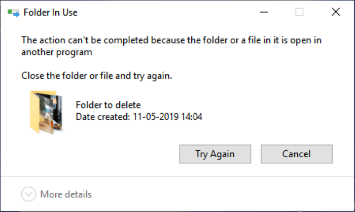The action cannot be completed because the file is open in another program is a message reflected in the “File in Use” window when trying to delete, rename, or move specific files and folders. The error appears because the manipulated file or folder is currently used by some application or background process. In most cases, it is enough to find and terminate the process that uses the file or simply restart your PC. However, there are situations when none of the above helps you get rid of the problem. The issue may keep reiterating itself even after rebooting the system. Unfortunately, the featured message offers no real solution on how to avoid this problem. Intuitively, users should stop the related process and try to delete or move their files afterward. Sometimes there are simply no related processes visible, which means users are unable to shave them. Luckily, there are potential prospects to address this issue and restore full control of the file. Follow this bundle of methods below that will help you remove the issue potentially.