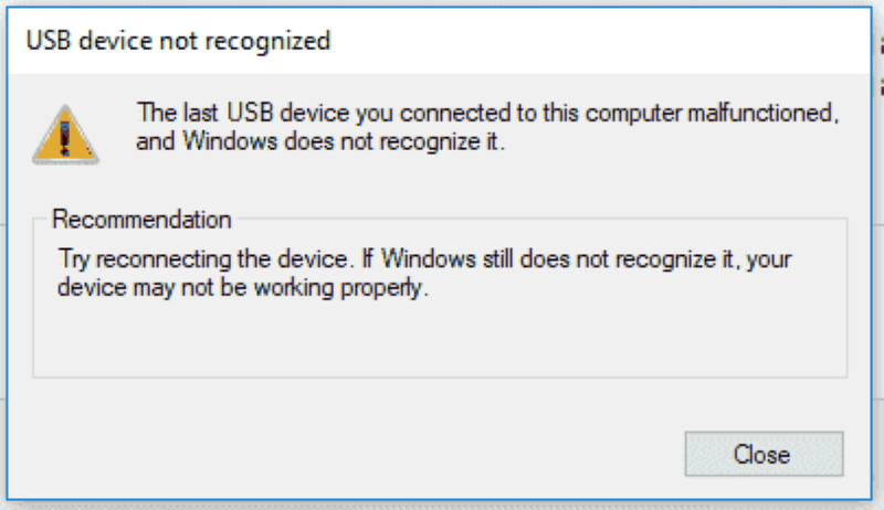 What is “The last USB device you connected to this computer malfunctioned” error