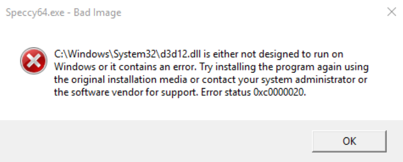 “C:\Windows\System32\d3d12.dll is either not designed to run on Windows or it contains an error”