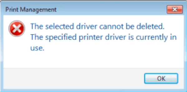 What is “The specified printer driver is currently in use” error