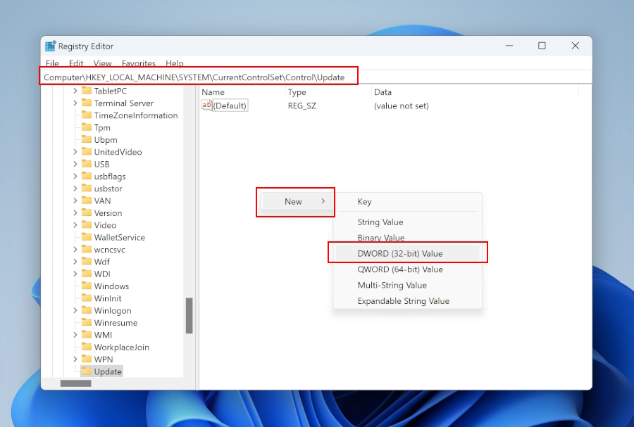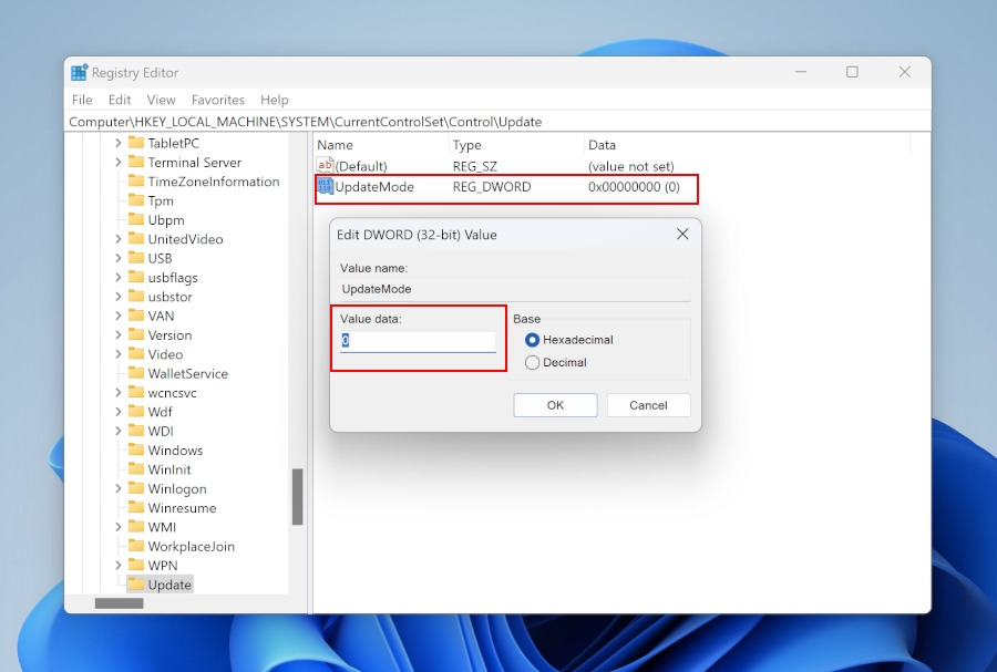 . - Find the UpdateMode key. If it doesn’t exist, create it by right-clicking, selecting New > DWORD (32-bit) Value, and naming it UpdateMode.