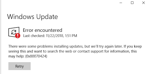 What is Windows Update Error 0x80070424