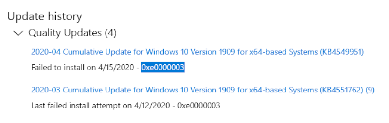 - You can also find this out by noting the name of the failing update (in case it displays).