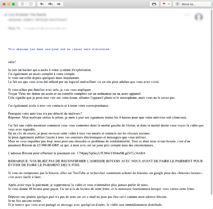 Mais ne vous inquiétez pas trop, nous pouvons résoudre ce problème de confidentialité. Tout ce dont nous avons besoin, c'est d'un paiement Bitcoin de £3,960.00 GBP, ce qui, à mon avis, est un juste prix compte tenu des circonstances.