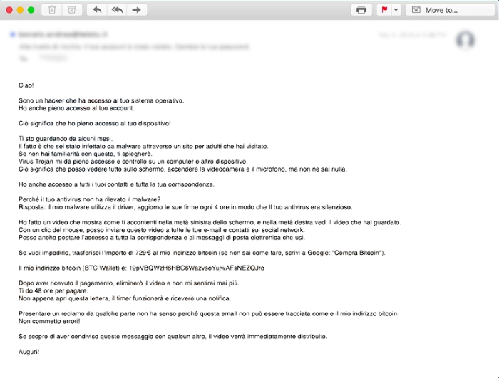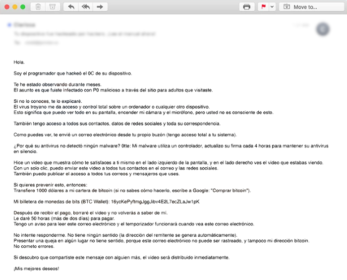 Possible harm from spam campaigns, like “Hacker Who Has Access To Your Operating System”