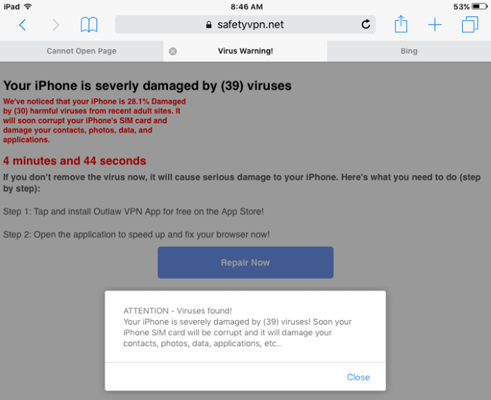 Remove app, that may cause “39 viruses were found” pop-up from iOS: