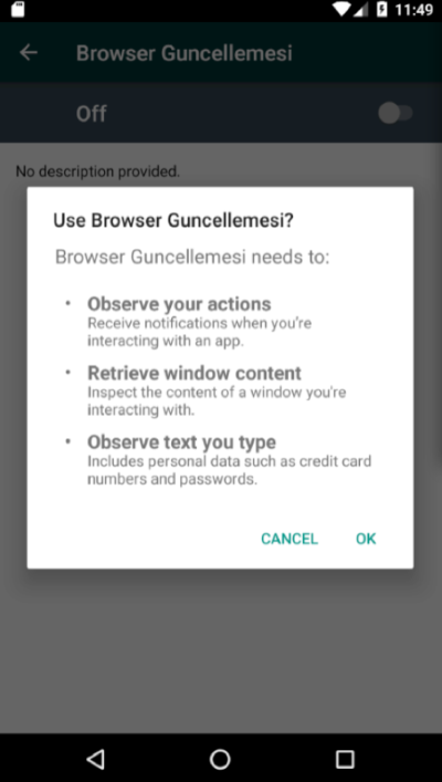 BianLian is the name of a banking trojan designed to exfiltrate mainly finance-related information. After successful installation, it bombards the device’s screen with pop-up windows that request users to allow various Accessibility Features. Once the demanded permissions are granted, the trojan acquires an almost limitless range of malicious features. For instance, it might display fake interactable windows on top of various banking applications. This way, cybercriminals attempt to trick users into entering their log-in credentials and steal them eventually. BianLian was also discovered able to run USSD codes and perform calls; prevent users from using a device by force-locking the screen; enable screen recording, manage SMS text messages, and also create an SSH server for protecting its communication channels. Such modules used by the trojan are obviously dangerous and might lead users to significant financial losses, identity thefts, and other problems that no one would desire. Thus, it is important to remove the trojan infection and restore safety on your Android device. You should also change all your log-in credentials and even block your card at the bank to prevent financial abuse.