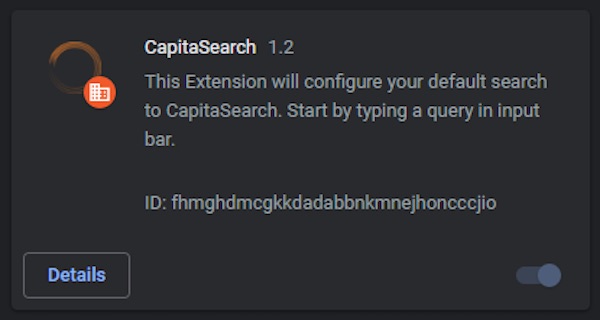 chrome://extensions. - Find CapitaSearch 1.2 or other suspicious extensions.