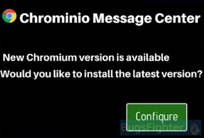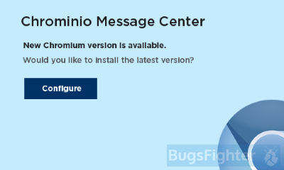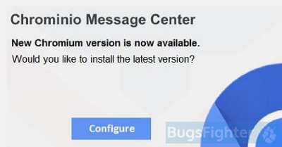 Clicking “Configure” button will result in downloading and installation of rogue browser. Chromium is built on the same platform as Google Chrome, they look similar, and many users can get confused. Malefactors use this to substitute Chrome on users computers with Chromium filled with adware, pre-installed malicious extension and unwanted search engines. Chrominio Message Center is intermediary program, but it can bring major problems. We recommend you to remove Chrominio Message Center using instructions in this article.