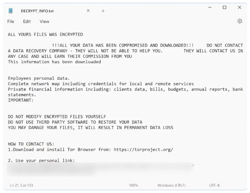 !!!ALL YOUR DATA HAS BEEN COMPROMISED AND DOWNLOADED!!! DO NOT CONTACT A DATA RECOVERY COMPANY - THEY WILL NOT BE ABLE TO HELP YOU. THEY WILL CONTACT US IN ANY CASE AND WILL EARN THEIR COMMISSION FROM YOU