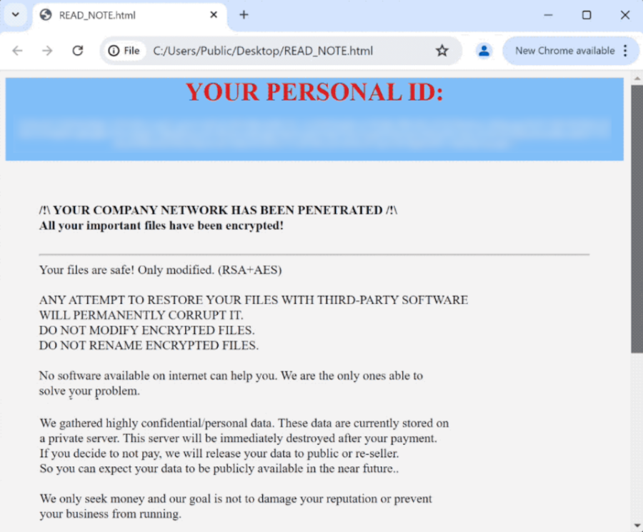 ETHAN Ransomware is a malicious software threat classified under the MedusaLocker ransomware family. It is specifically designed to infiltrate computer networks, encrypt files, and demand ransom payments from victims in exchange for file decryption. This ransomware uses a combination of RSA and AES cryptographic algorithms, which are often employed to ensure that once data is encrypted, decryption becomes exceedingly difficult without the correct key. In a typical attack, files on an infected system are targeted for encryption, and as part of this process, their original filenames are altered by appending the extension .ETHAN — for instance, a file named document.docx becomes document.docx.ETHAN. Following the encryption, READ_NOTE.html, a ransom note file, is generated and placed in various locations on the affected system, often accompanied by changes to the desktop wallpaper to further alert the user to the breach. This ransom note informs victims that their files have been encrypted and that personal or company data might have been exfiltrated, thus exerting additional pressure to comply with the payment demands.