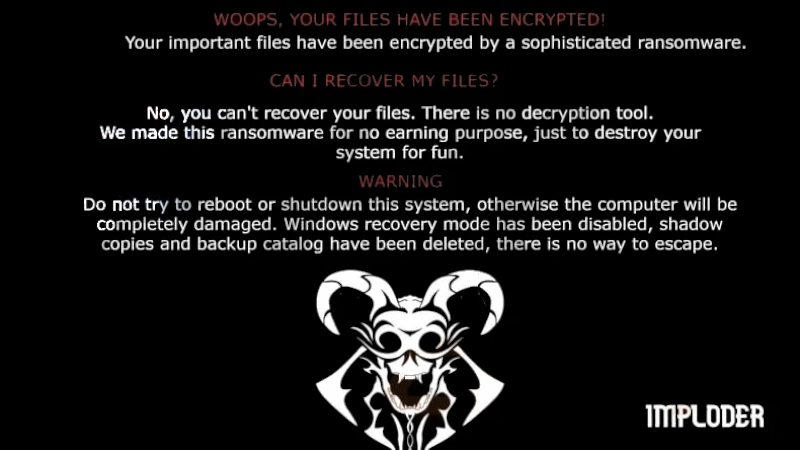 Imploder Ransomware is a malicious software designed to encrypt files on a victim’s computer, demanding a ransom for their decryption. This ransomware is particularly notorious for appending a .imploder extension to each affected file, rendering them unusable without the decryption key. Initially, a file named example.jpg would become example.jpg.imploder after encryption. Victims of this ransomware will encounter a dramatic change in desktop aesthetics, as it modifies the wallpaper and simultaneously displays a pop-up window titled helpme.bat. The ransomware’s ransom note is insidious yet disorganized, lacking any direct contact information or payment instructions. This may suggest it was released for testing purposes or to create havoc without monetary gain. Despite its threats, such as warning against rebooting the system or altering file extensions, which are said to cause irreversible damage, many aspects of the note appear contradictory, including its ultimatum of irreversible damage within three days.