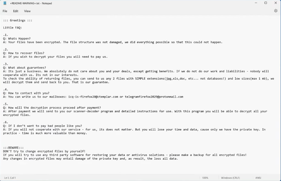 A: You can write us to our mailboxes: icq-is-firefox20@ctemplar.com or telegramfirefox2029@protonmail.com