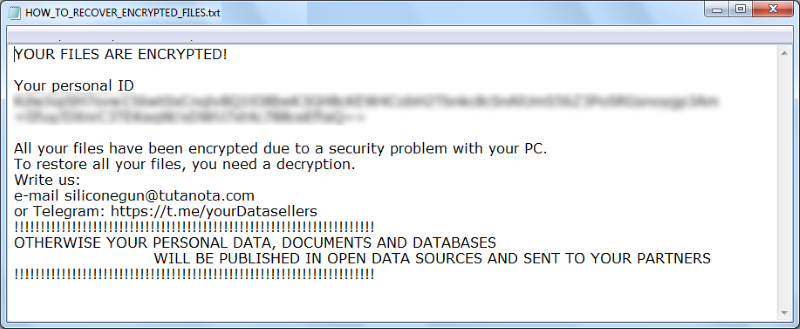 Matroska Ransomware is a malicious piece aimed at data encryption. Matroska used to show its activity a couple of years ago until it went dormant. Within some time, it started a series of new infections on users’ PCs. Whilst older examples of Matroska applied the .HUSTONWEHAVEAPROBLEM@KEEMAIL.ME, .happyness, .encrypted[Payfordecrypt@protonmail.com], .nefartanulo@protonmail.com extensions to encrypted files, recent attacks of this ransomware showed the new .siliconegun@tutanota.com extension being involved. Depending on which version impacted your system, a file like 1.mp4 will change to 1.mp4.happyness or 1.mp4.siliconegun@tutanota.com at the end of encryption. Once this process is finished, the virus goes further and creates a text file (HOW_TO_RECOVER_ENCRYPTED_FILES) with decryption instructions.