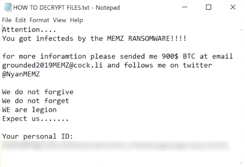 MEMZ Ransomware is a type of malicious software that encrypts files on a victim’s computer, rendering them inaccessible without a decryption key. It appends the .MEMZ extension to the filenames of encrypted files and generates a ransom note titled HOW TO DECRYPT FILES.txt which is placed in every folder containing encrypted files. The ransom note typically instructs victims to pay a ransom, often in Bitcoin, to receive the decryption key necessary to unlock their files. It includes contact information for the ransomware operators, usually an email address and sometimes a Twitter handle, and threatens permanent data loss to coerce victims into paying. MEMZ ransomware uses robust encryption algorithms, making it nearly impossible to decrypt the files without the specific decryption key held by the attackers. As of the latest information, there are no known decryption tools available that can universally decrypt files affected by MEMZ ransomware without the original decryption key. If a computer is infected with MEMZ ransomware, the recommended steps include isolating the infected device to prevent the ransomware from spreading to other systems, identifying the specific ransomware variant, and checking for any available decryption tools.