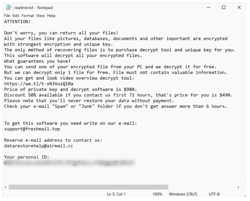 {alphanumeric sequence}This note explicitly conveys that the only way to reverse the file encryption is through the use of a decryption key, which the attackers claim to provide in exchange for a ransom payment. The ransom amount typically ranges from $490 to $980, usually demanded in Bitcoin cryptocurrency. Decrypting files encrypted by the Mlza ransomware can be a daunting task. It’s not recommended to attempt it without expert guidance. While there have been instances where ransomware developers have accidentally left flaws in their encryption mechanisms, providing a potential recovery window, banking on such a loophole is uncertain and rare.