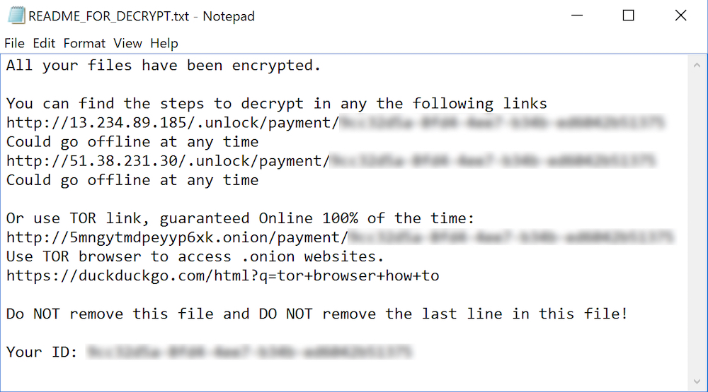 Muhstik Ransomware virus spreads via infected websites. On infected sites, JSCoinminer is detected, a Web attack is conducted on visitors’ computers. Can be also distributed by hacking through an unprotected RDP configuration, using email spam and malicious attachments, fraudulent downloads, exploits, web injections, fake updates, repackaged and infected installers. Virus assigns certain ID with the victims, that is used to name those files and supposedly to send decryption key. In order to prevent infection with this type of threats in future we recommend you to use SpyHunter 5 or Norton Antivirus.