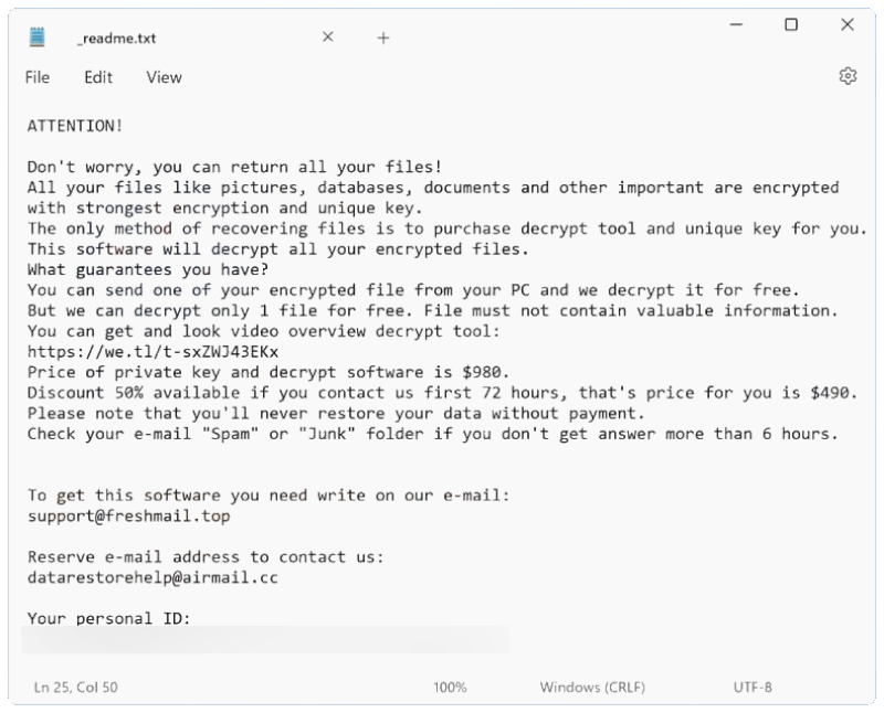 Mzhi Ransomware is a type of malicious software designed to encrypt files, rendering them inaccessible to the victim. Its primary aim is to extort money from the victim in exchange for the decryption key to unlock the encrypted files. Mzhi Ransomware is similar to other ransomware strains like Mzqt, Azqt, and Mzqw, which also encrypt files and demand ransom payments. Mzhi Ransomware appends the .mzhi extension to the filenames of the encrypted files. This ransomware typically uses strong encryption algorithms like AES or RSA to encrypt the victim’s files, making it nearly impossible to decrypt them without the correct key. Mzhi Ransomware creates a ransom note named _readme.txt and drops it in various directories on the infected computer. The ransom note informs the victim that their files have been encrypted and demands a ransom payment, usually in the form of cryptocurrency, to provide the decryption key.