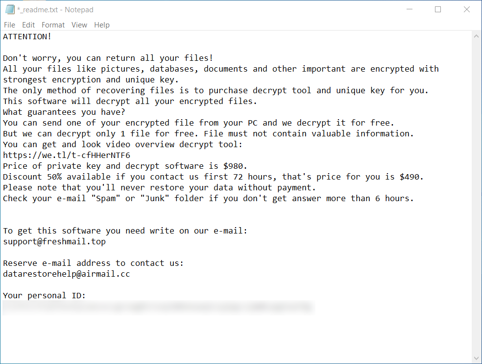 Ppvt Ransomware is harmful and dangerous file-encrypting infection that restricts access to data by encrypting files with the “.PPVT” extension. It is a variant of the notorious STOP/DJVU ransomware family. This ransomware targets images, documents, videos, and other important files on infected computers, encrypting them and appending the .ppvt extension to the filenames, rendering them inaccessible. Upon infection, the PPVT ransomware scans the computer for specific file types such as .doc, .docx, .xls, .pdf, and more. When these files are detected, the ransomware encrypts them and makes them inaccessible. The ransomware uses the Salsa20 encryption algorithm, which is a robust ciphering algorithm that provides an overwhelming amount of possible decryption keys. Once the Ppvt Ransomware has encrypted the files on your computer, it drops a ransom note named _readme.txt on the desktop. This note contains instructions on how to contact the authors of the ransomware and demands payment in Bitcoin cryptocurrency in exchange for the decryption key.