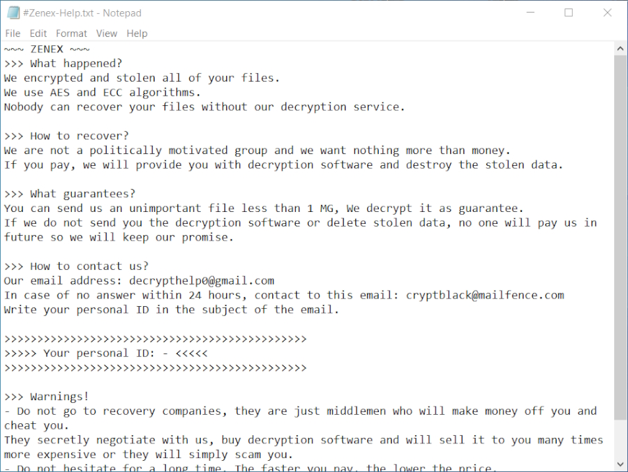 Proton Ransomware is a malicious software designed to encrypt files on a victim’s computer, rendering them inaccessible until a ransom is paid. Proton Ransomware is a type of malware that encrypts files on the infected computer, adding specific extensions to the filenames and demanding a ransom from the victim to restore access to the encrypted files. It has been discovered in various forms, with some variants appending extensions such as .c77l, .ZENEX or .SWIFT extensions to the affected files along with emails (.[decrypt.computer@gmail.com].c77L, [decrypthelp0@gmail.com].ZENEX, .[swift_1@tutamail.com].SWIFT). Basically, SWIFT Ransomware and ZENEX Ransomware are just variations of Proton Ransomware. This variations create following ransom note files: #Zenex-Help.txt, #SWIFT-Help.txt or #Restore-files.txt. The ransomware uses AES (Advanced Encryption Standard) and ECC (Elliptic Curve Cryptography) algorithms to encrypt files, ensuring that the encryption is strong enough to prevent unauthorized decryption without the unique key held by the attackers. This article aims to provide a comprehensive overview of Proton Ransomware, including its infection methods, the file extensions it adds, the encryption algorithms it uses, the ransom note it creates, and the possibilities for decryption.