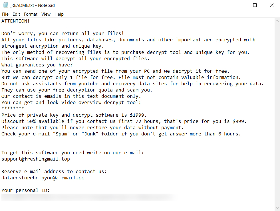 Qeza Ransomware is wide-spread encruption virus from STOP/Djvu Ransomware family. Upon successful infiltration, Qeza ransomware initiates a systematic encryption process, targeting a wide range of file types including documents, images, videos, and databases. It appends a distinctive .qeza file extension to each encrypted file, signaling that the file has been locked and is no longer accessible without the decryption key. The ransomware employs a robust encryption algorithm, typically AES (Advanced Encryption Standard) or RSA, to encrypt the files. This ensures that the files are securely locked, making unauthorized decryption without the unique key practically impossible. Following the encryption process, Qeza ransomware generates a ransom note named _readme.txt and places it in every folder containing encrypted files, as well as on the desktop. This note serves as a communication from the attackers to the victim, providing instructions on how to pay the ransom in exchange for the decryption key. The note typically includes the ransom amount, often demanded in cryptocurrencies such as Bitcoin for anonymity, and instructions on how to make the payment. It may also offer the decryption of a few files for free as a “guarantee” that the attackers possess the decryption key.