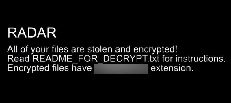 RADAR Ransomware represents a particularly insidious strain of malware that compromises systems by encrypting files and demanding ransom payments for their decryption. This ransomware operates by appending random character strings to the names of affected files, making it difficult for victims to identify or use their data. usually it’s 8-character alphanumerical sequence, something like .Qe7l01NP or similar. After encryption, it generates a ransom note titled README_FOR_DECRYPT.txt, usually found in every folder containing encrypted files. The message warns victims against tampering with or deleting the locked files, as these actions could render decryption impossible. Unfortunately, there is no guarantee that paying the ransom will lead to the safe recovery of files, as attackers often fail to provide the necessary decryption tools even after receiving payment.