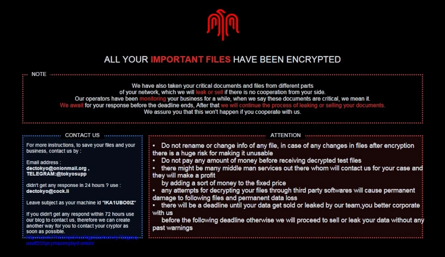 Email address : dectokyo@onionmail.org , TELEGRAM:@tokyosupp