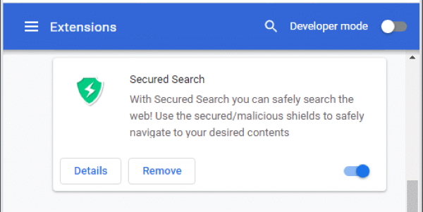 Note: Secured Search can be installed as Google Chrome extension as Administrator (you may see Installed by enterprise policy inscription near it), and this will not allow removal. Therefore, before starting removal process, perform these actions: