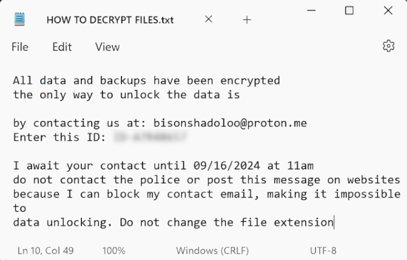 following encryption. The ransomware uses advanced cryptographic algorithms, typically either symmetric or asymmetric, to ensure that unauthorized decryption is nearly impossible. Following the encryption process, it alters the desktop wallpaper and leaves a ransom note named HOW TO DECRYPT FILES.txt, which informs victims about the encryption and provides instructions for contacting the attackers.