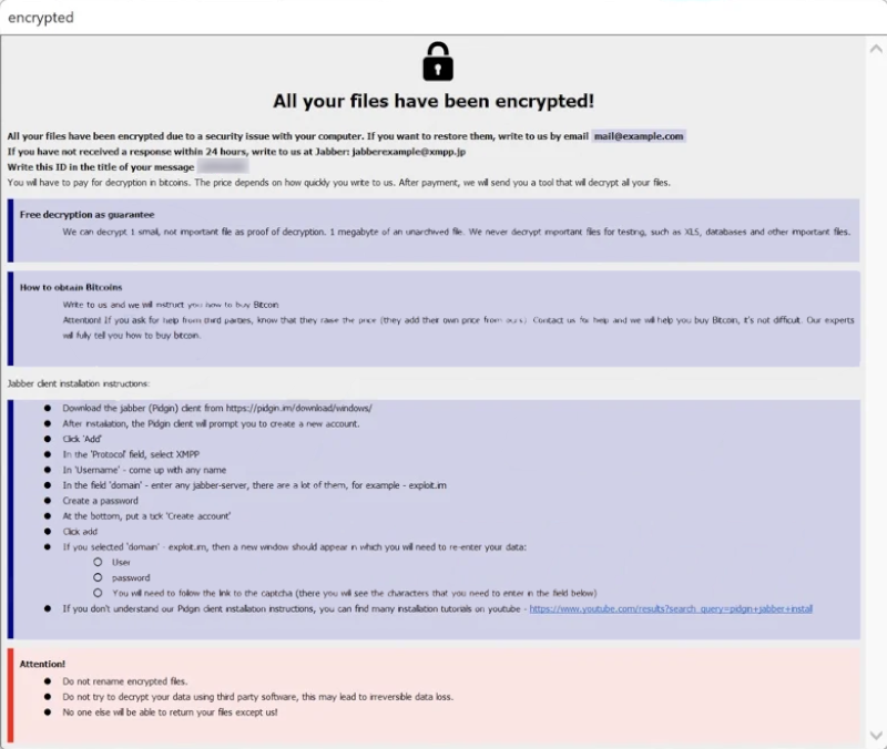 All your files have been encrypted due to a security issue with your computer. If you want to restore them, write to us by email -