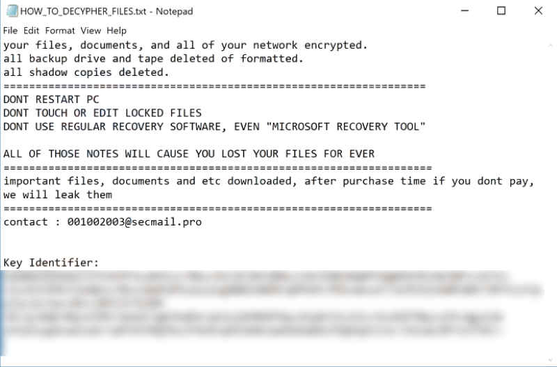 We have also uploaded a lot of files from your network on our secure server, so if you refuse to pay the ransom,