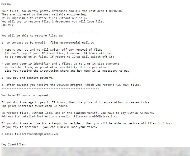 unique identifier key.After that, we will send you our corona decryption tool to restore all your files.