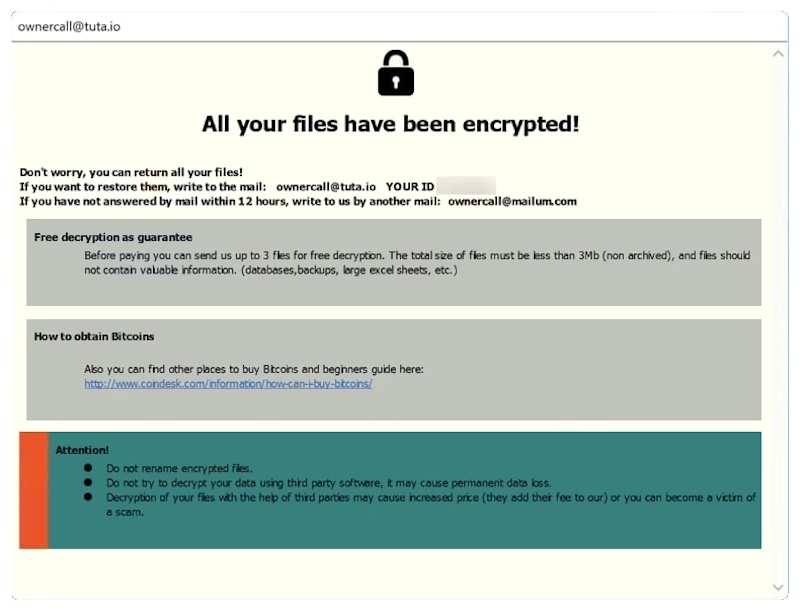 If you want to restore them, write to the mail: ownercall@tuta.io YOUR ID -