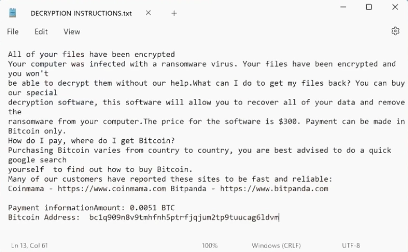 This note generally informs the victim that their files have been encrypted and provides instructions on how to pay a ransom, typically in Bitcoin, in exchange for the decryption software. The ransom demand is usually set at around $300, and it includes a Bitcoin address for the payment. Unfortunately, as of the latest updates, there are no publicly available decryption tools that can unlock files encrypted by Tyson Ransomware. Even if the victim is willing to pay the ransom, there’s no guarantee that the attackers will honor their promise and provide a working decryption key. Therefore, the best course of action is to focus on prevention, ensuring backup solutions and robust cybersecurity measures are in place to avoid such infections in the first place.